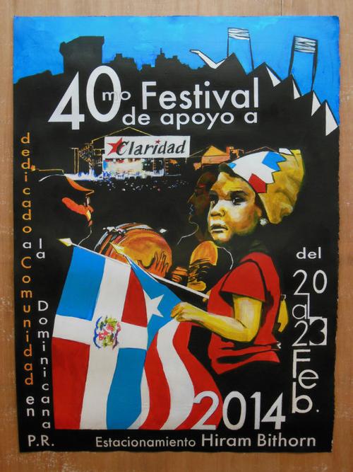 Cartel del XL Festival de apoyo a CLARIDAD 2014, dedicado a la comunidad dominicana en Puerto Rico.